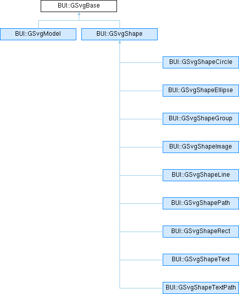 类 BUI::GSvgBase 继承关系图:Public 成员函数 | |