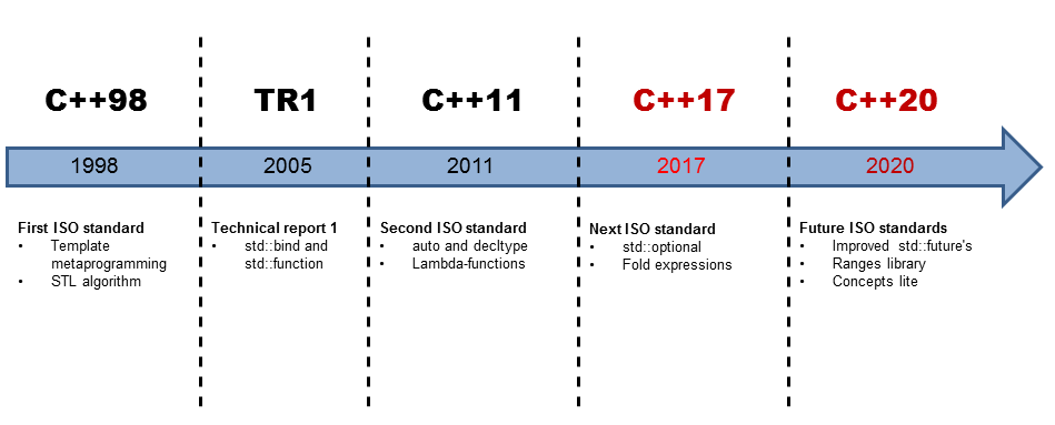 - 发布的产品包含demo源码。可直接用cmake构建 注意:切换工程到release模式,否则运行会异常。 C++标准发展时间简史。